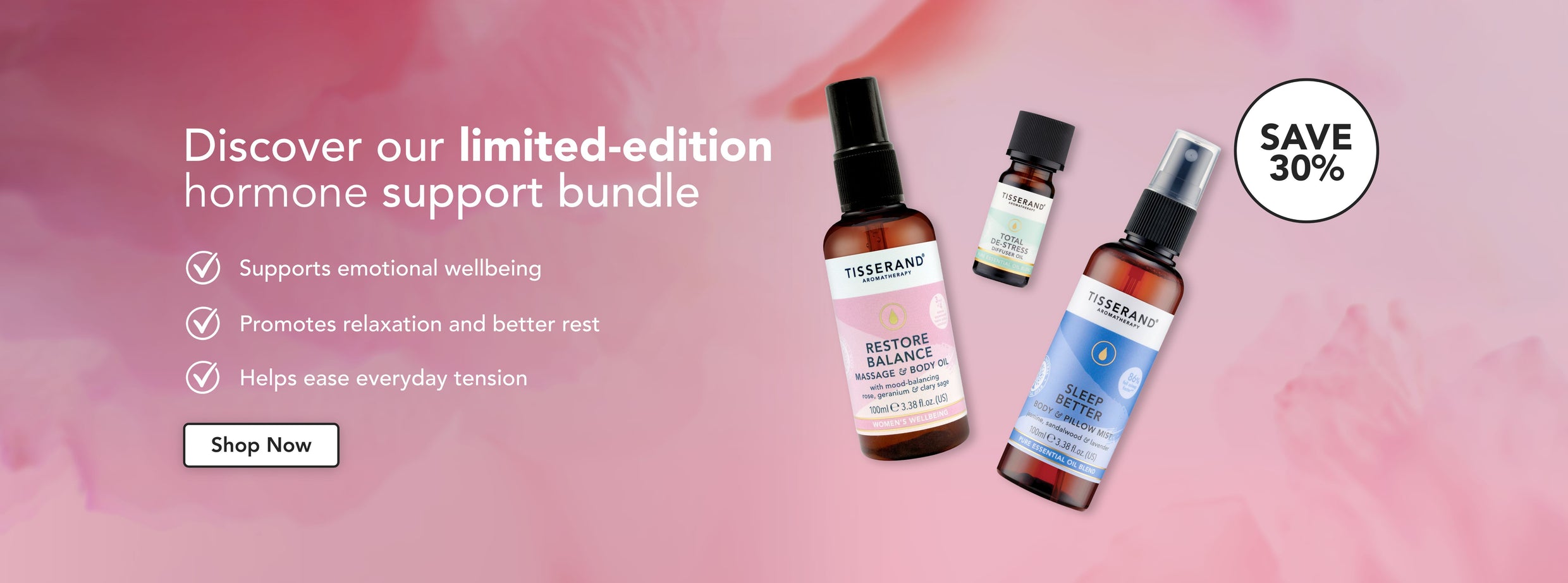 A selection of expert blends and single essential oils, providing natural ways to target key wellbeing needs, from sleep quality to stress relief and women's health.