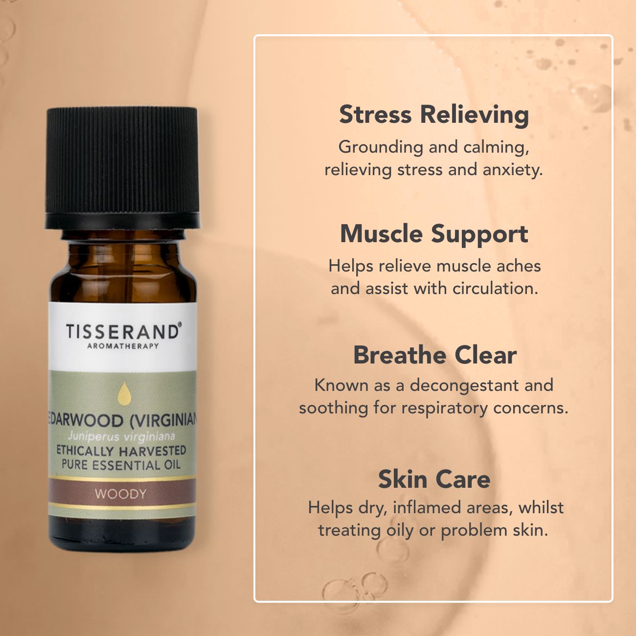 With a sweet, warm and woody aroma and fresh, balsamic notes, Cedarwood (Virginian) essential oil brings a sense of calm and gentle grounding wherever it’s used. Its comforting scent is known to help ease an anxious mind and uplift the mood, and it can also be used to soothe dry, inflamed or acne-prone skin.