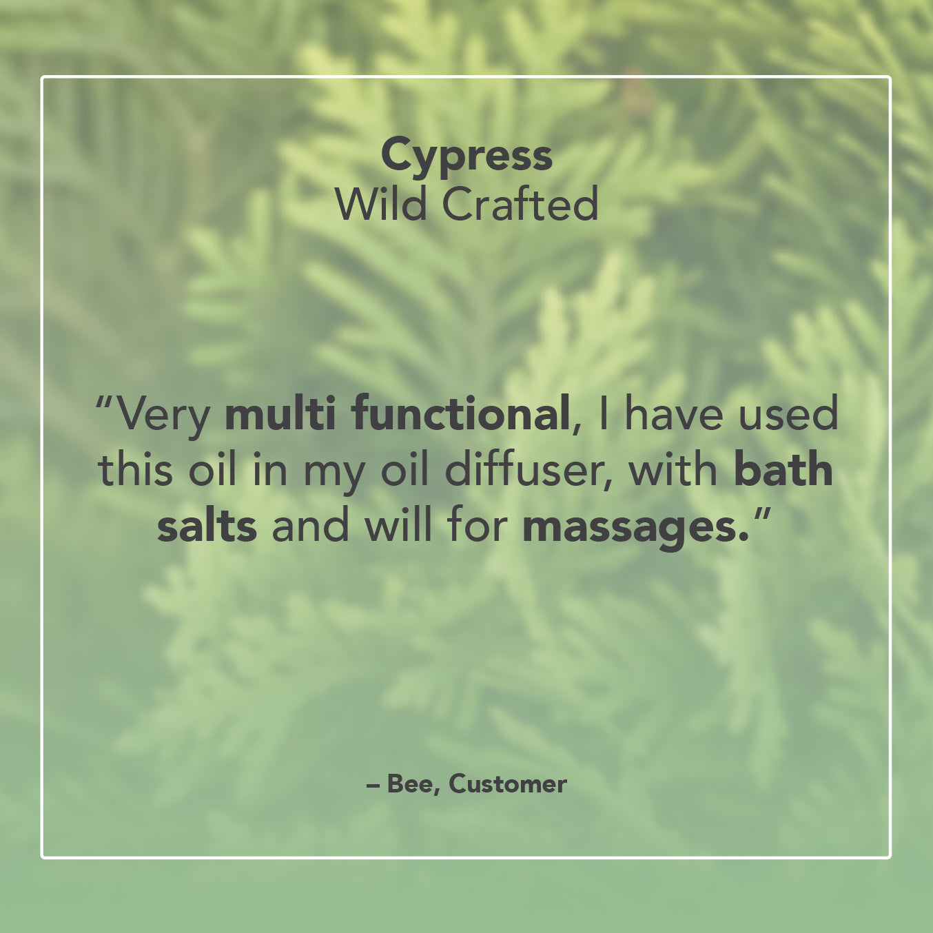 Cypress essential oil has a fresh, green and earthy aroma with smoky, resinous undertones reminiscent of a pine forest. Its sweet, woody scent is both purifying and uplifting, encouraging strength and bringing a sense of calm during hard times. It is also widely used to treat oily and congested skin and soothe respiratory complaints.
