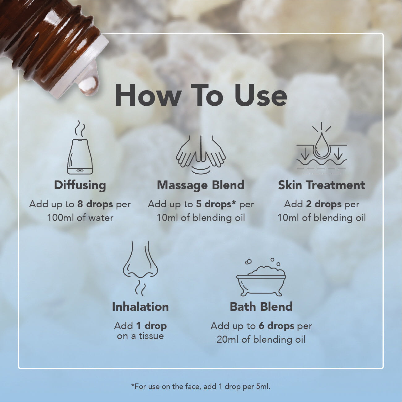 Frankincense essential oil has a warm, rich and resinous aroma with sharp top notes that give way to a deep, woody scent. It’s a popular choice for meditation and moments of reflection due to its ability to ground emotions and harmonise both the body and mind.
