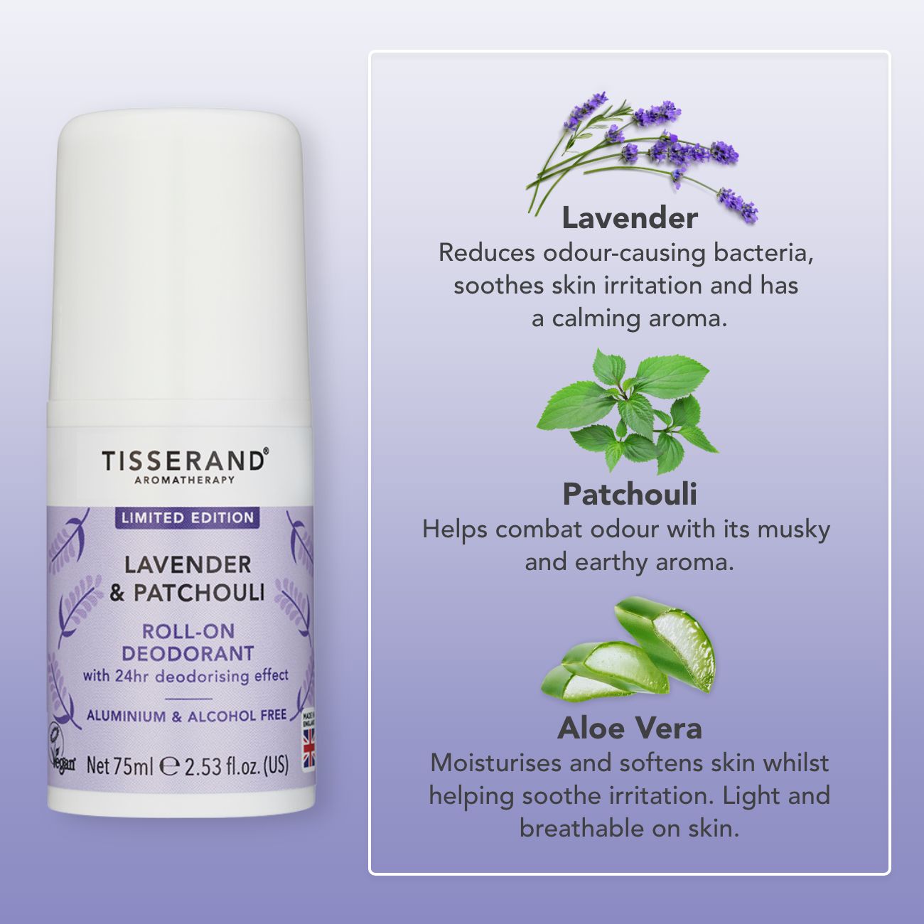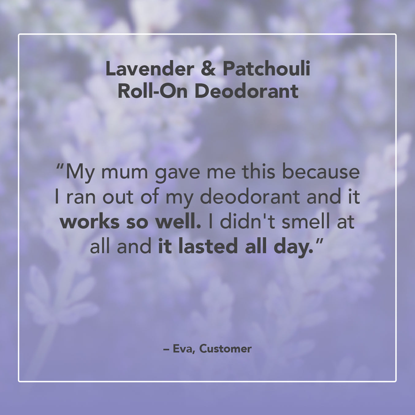 Stay shower-fresh and protected all day long with the Lavender & Patchouli Roll-On Deodorant. This skin-friendly natural deodorant combines soothing Lavender and grounding Patchouli with calming Aloe Vera and uplifting Grapefruit to help soothe, scent and clear the skin.
