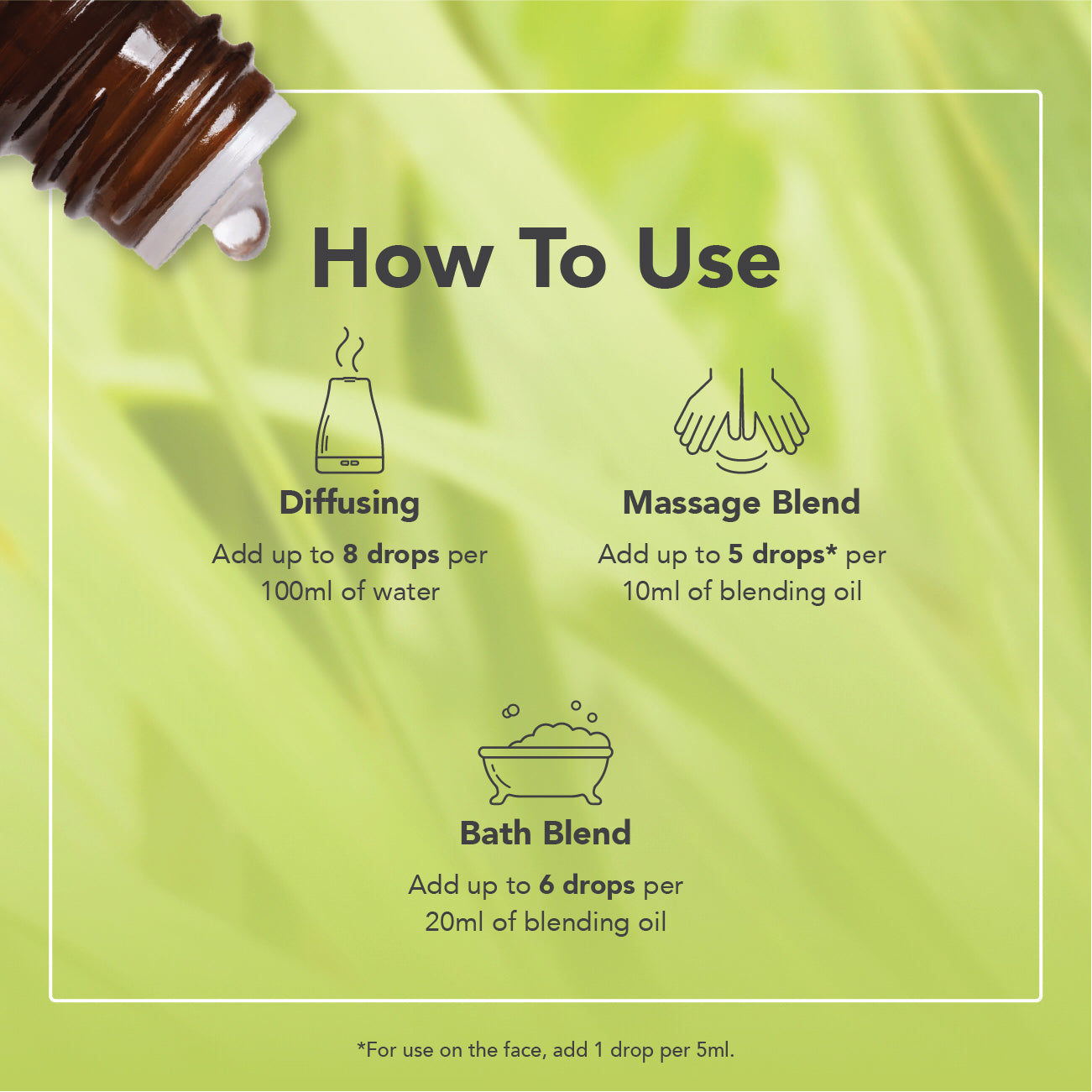 Lemongrass essential oil has a sharp, sweet and lemony aroma with fresh, herby undertones. It's zesty and invigorating scent is both uplifting and refreshing, making it a perfect choice to brighten your day and clear the mind. It can also help to soothe tired muscles and joints, improve sluggish digestion, and invigorate the body after exercise.