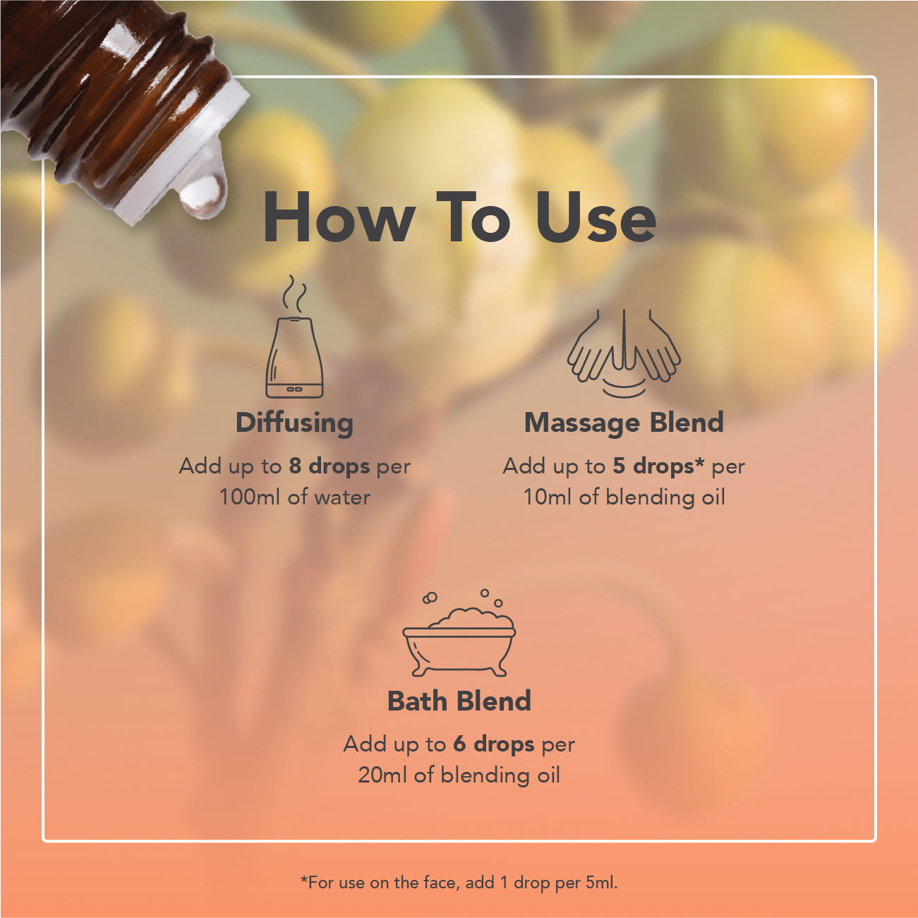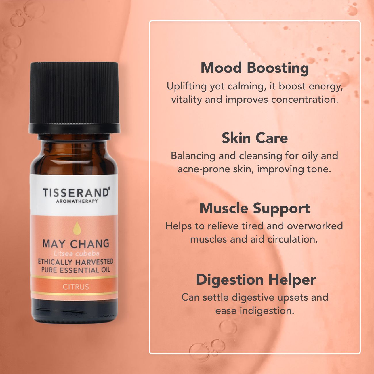 May Chang essential oil has a delightfully fizzy, lemon-sherbet aroma that’s bright, sweet and instantly uplifting. Like a burst of zesty sunshine, this revitalising oil is a favourite for boosting energy, clearing the mind and bringing a cheerful lift to your day. It can also help to ease tired, overworked muscles when used in a massage blend.