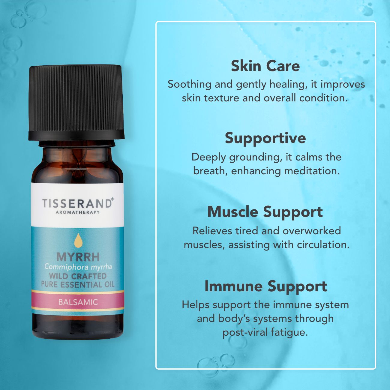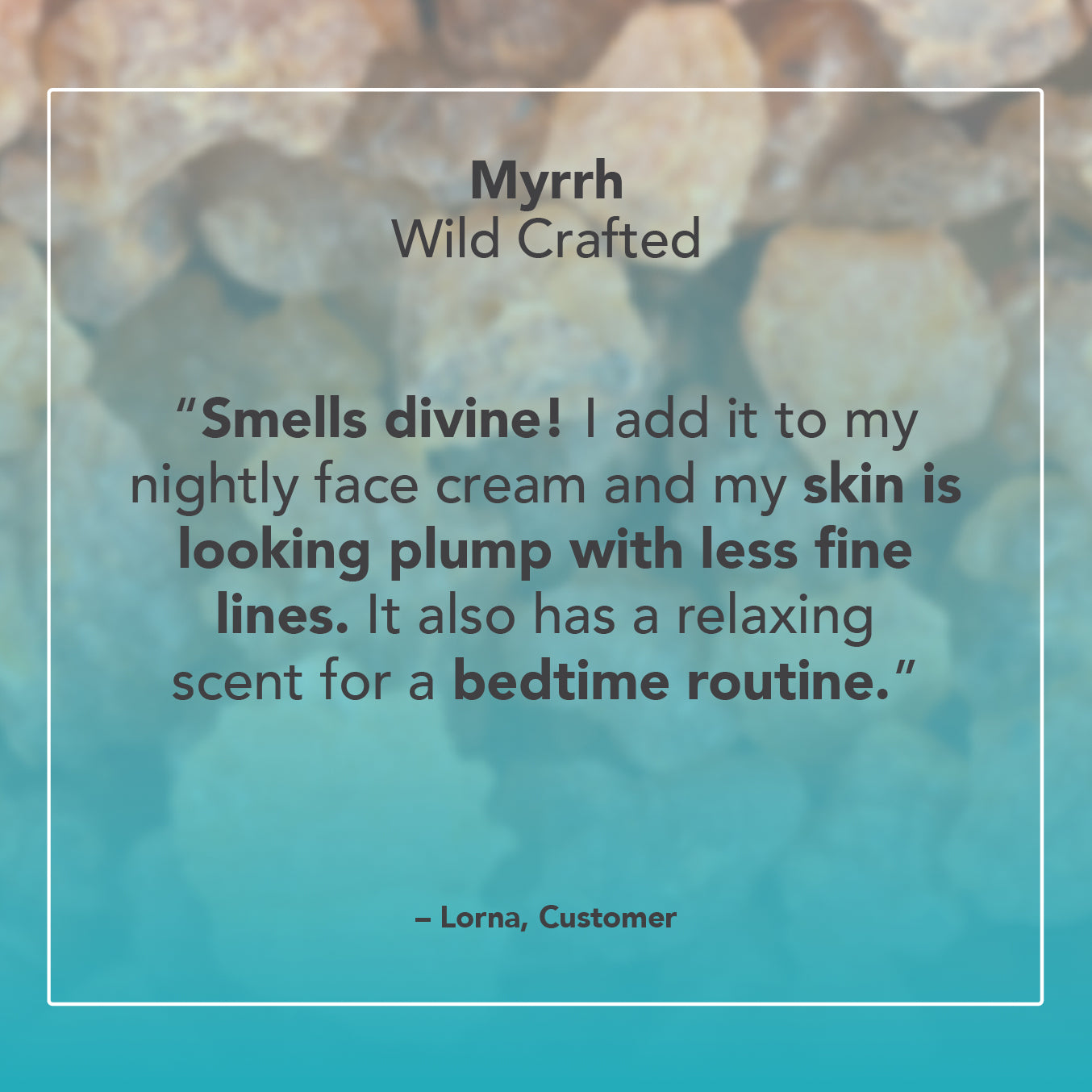 Warm, spicy and woody, Myrrh essential oil has a rich, slightly bitter aroma that’s both comforting and grounding. It can create a sense of calm and encourage inner tranquility, making it a great meditation aid. It can also be used as a gentle skin treatment to encourage skin repair.
