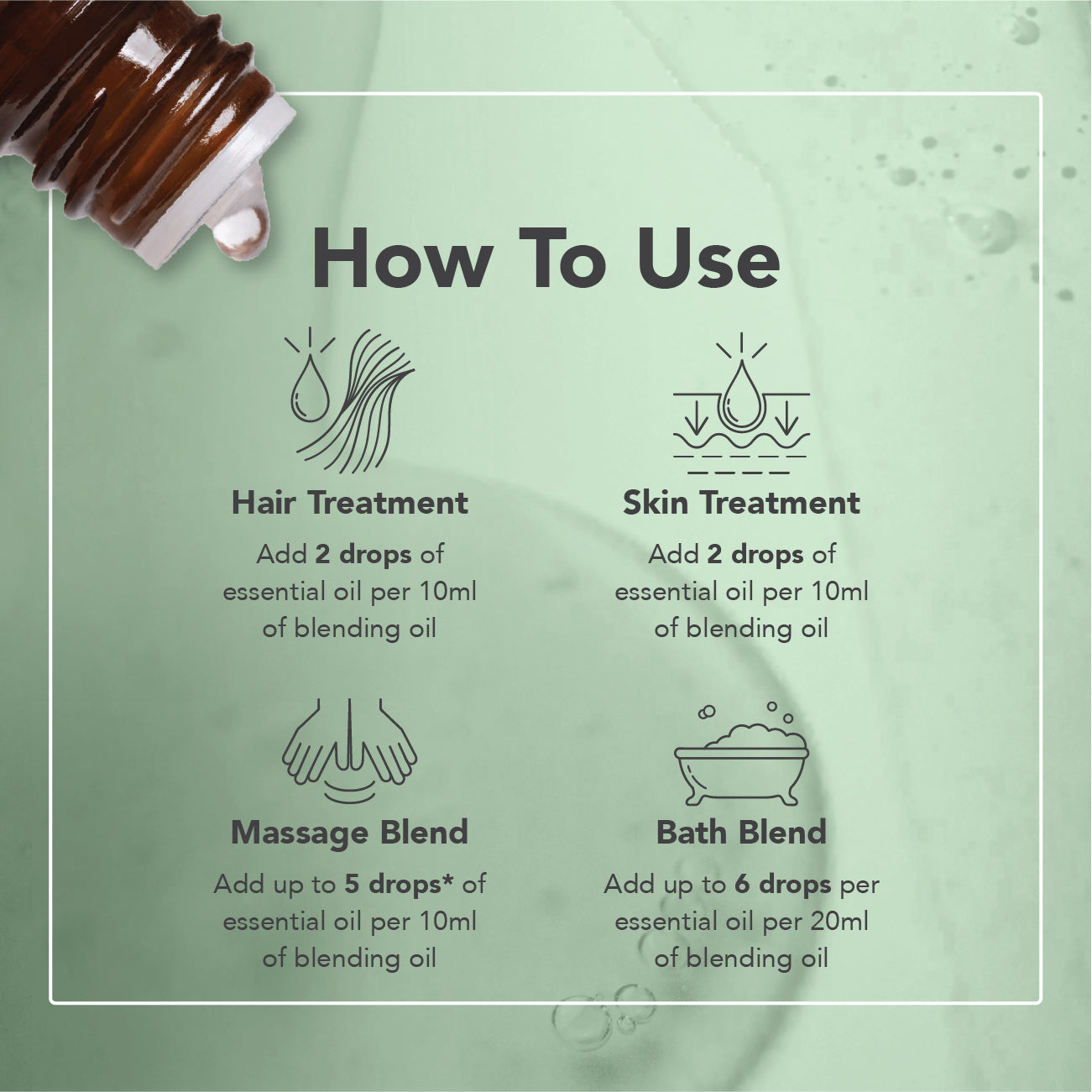 Add up to 2 drops of essential oil to 10ml of blending oil.